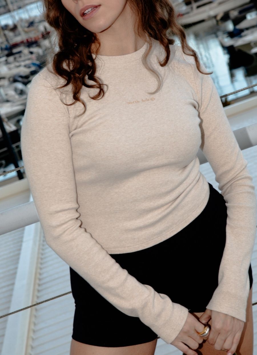 Elevate your look with this slim-fit long sleeve, crafted from soft ribbed fabric and finished with tone-in-tone "Narah Soleigh" embroidery. The thicker organic cotton blend makes it perfect for layering or wearing solo.