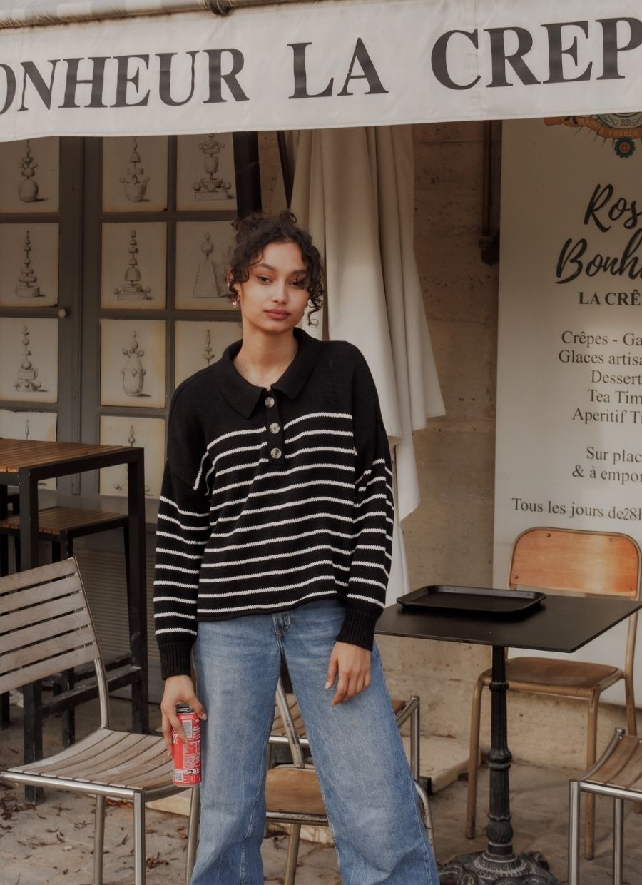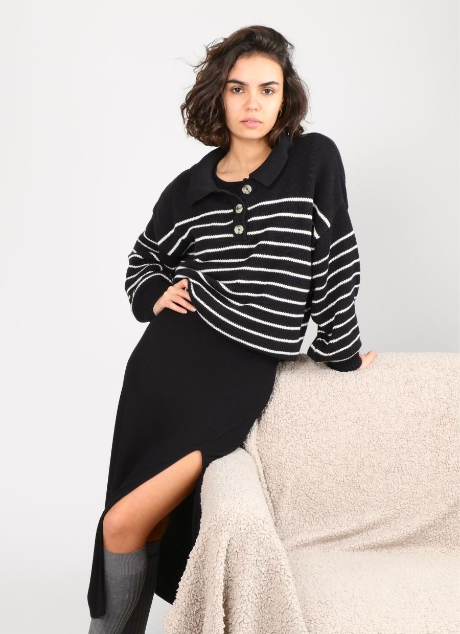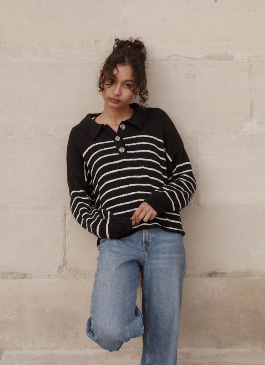 Knit Sweater Elise Organic Cotton - Black & White Striped