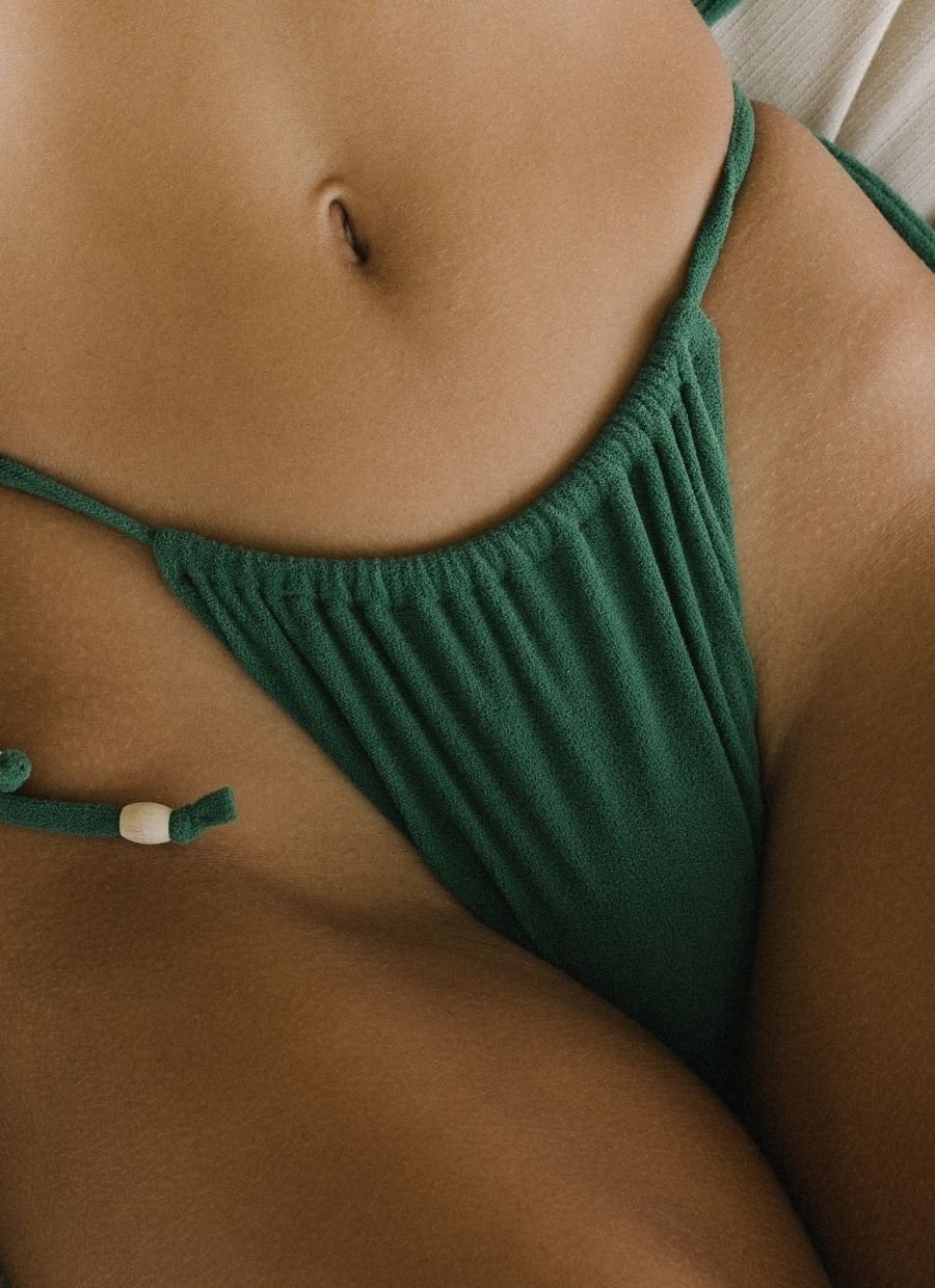 Designed to hug your curves with adjustable coverage and side ties. Elongates your legs in the best possible way.