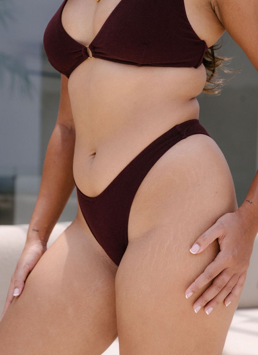 Our 90s-inspired Mara bikini bottom: mid-rise, high-cut leg, V-front detail, and medium coverage for all-day comfort.