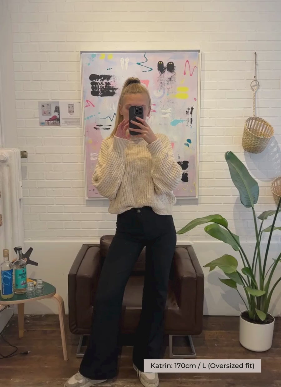 Stay cozy in this 100% organic cotton knit sweater. Perfect for colder days, it can be worn loose or tucked, with a comfortable ribbed turtleneck.