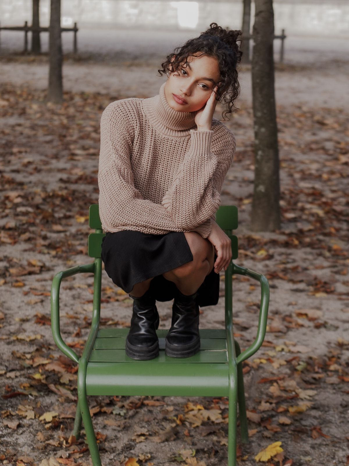 Turtleneck Knit Sweater Penelope Organic Cotton - Chocolate Brown