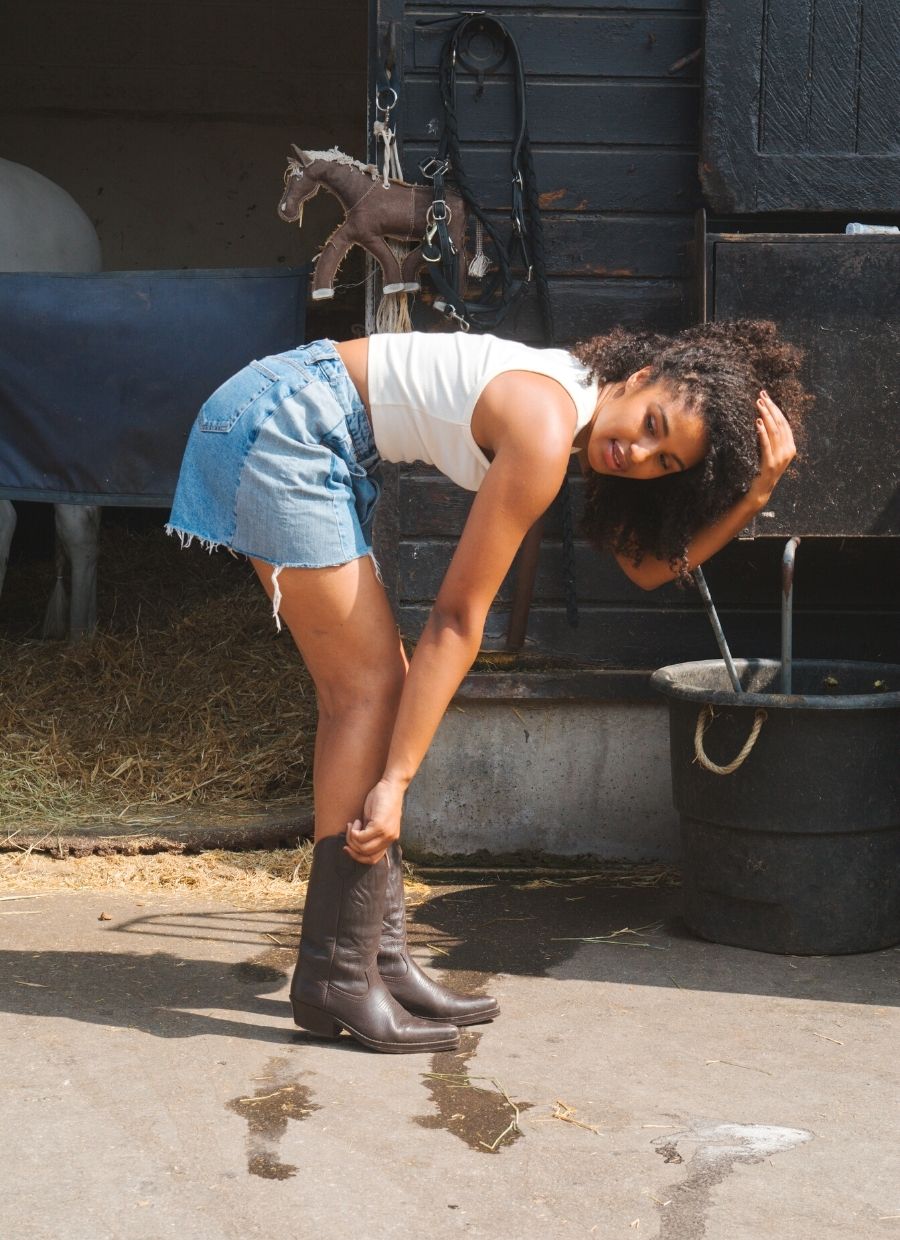 Perfectly cropped, non see-through and crafted from cozy fabric for all-day comfort. Its standout feature is the unique, in-house designed cowgirl boot embroidery.