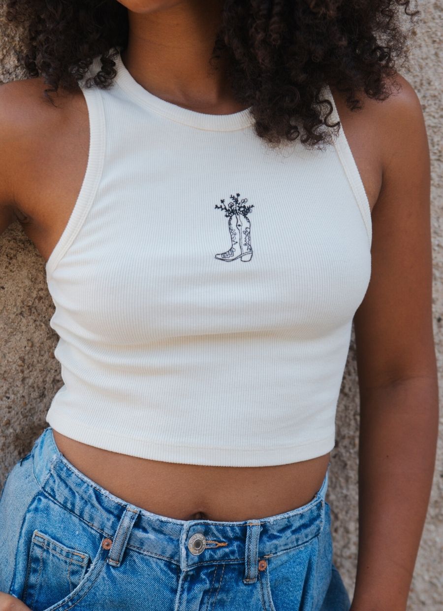 Crop Top Cowgirl Boot Organic Cotton - Off-White