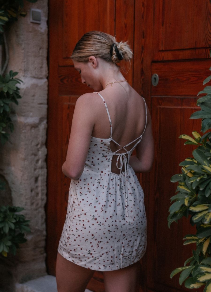 A sleeveless mini dress with a scoop neckline and an eye-catching open-back detail. The relaxed-fit skirt adds extra comfort.