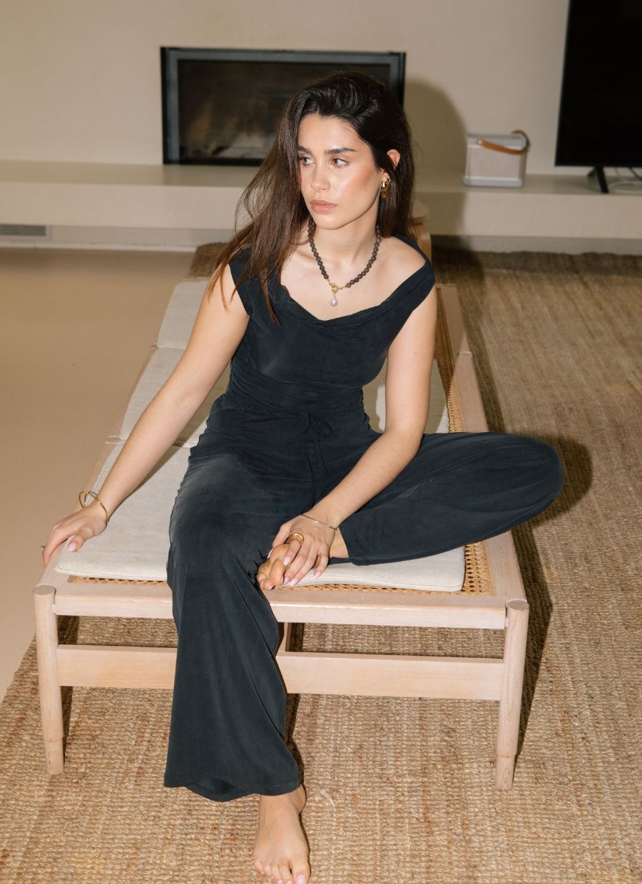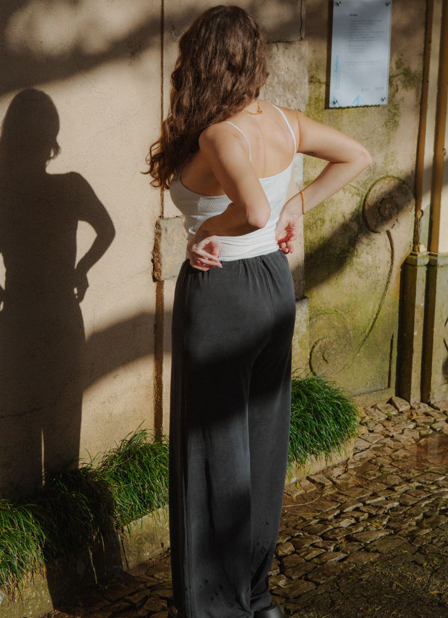 Wide Leg Drawstring Pant Cupro - Faded Black