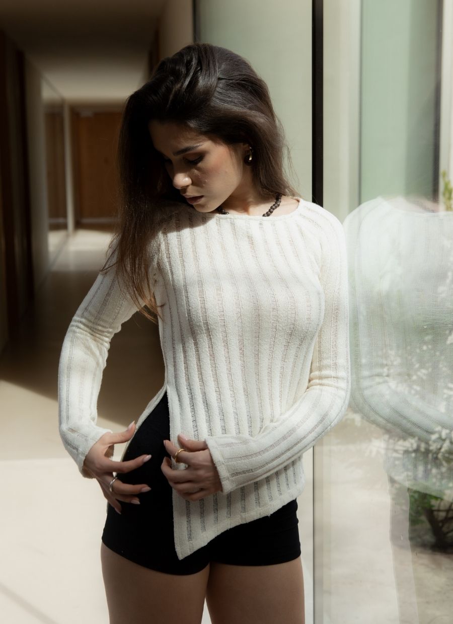 Asymmetrical Ribbed Longsleeve Organic Cotton - Ecru